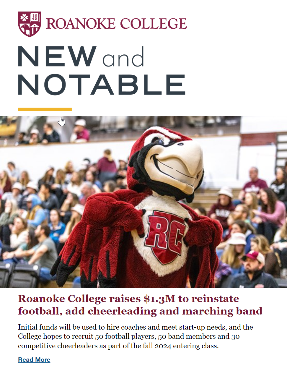 Sign up to receive Roanoke’s Counselor newsletter (3-4 issues by email per academic year) with the latest stories about new Roanoke programs and offerings, outstanding student experiences and more.