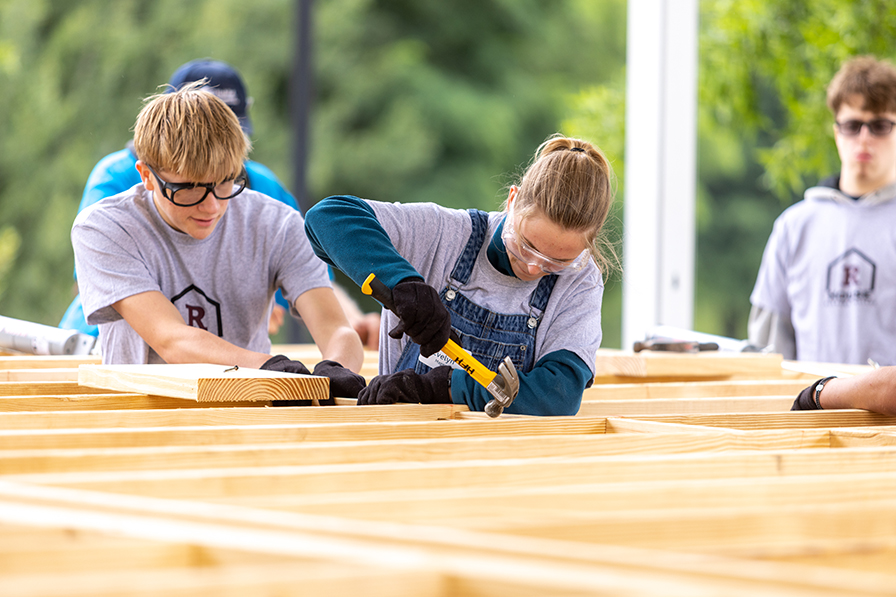 Each summer, new Roanoke College students join together with the College's chapter of Habitat for Humanity to build a house for a family in Roanoke. The house is largely constructed on campus and then moved to the permanent site.