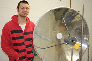 We strongly encourage Mathematics, Computer Science and Physics students with special interests to conduct independent study projects. An independent study project provides the qualified student with an opportunity for in-depth research into their topic of choice. Topics for independent studies often come from the students, either from a topic mentioned briefly in a class or from discussions of possibilities with the faculty. Avery Makel is shown with a solar collector for his original design of a mobile solar-powered refrigeration unit for medicine storage in third-world countries.