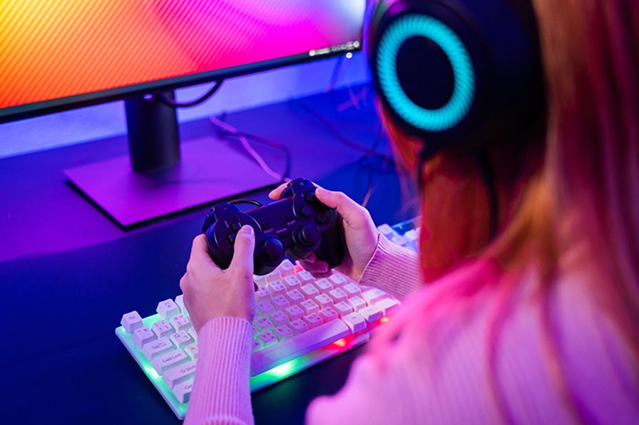 Eliza Bain ’24 worked with Assistant Professor Lauren Kennedy-Metz to investigate whether VR in video games was immersive enough to trigger a real physiological, stress response.