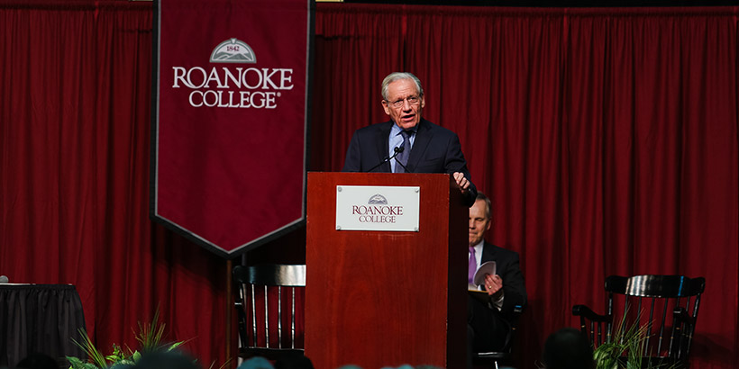 For about an hour, Woodward entertained a crowd packed into the College's Bast Center with analysis and anecdotes from this year's presidential election and his own stories of interviews with past presidents and both Hillary Clinton and Donald Trump. The event was sponsored by the Henry H. Fowler Program at Roanoke.