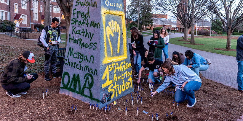 The vigil, which was part of the observance of Black History Month, also coincides with a larger campus effort to document and memorialize the history of enslaved people in the region. That work has included establishing the Center for Studying Structures of Race, creating a campus walking tour and pursuing plans to build an on-campus memorial.