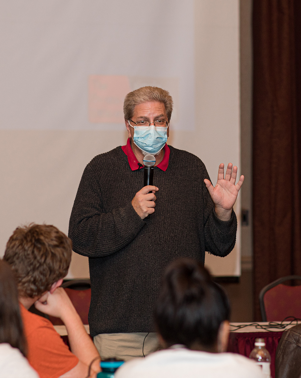 Hollis spoke to a packed Wortmann Ballroom beforehand and during commercial breaks, giving insight into the intricacies of using the buzzer, what the view was like for contestants, his travel adventures and more. Attendees whooped with every correct answer and cheered wildly when it was clear Hollis was going to win.