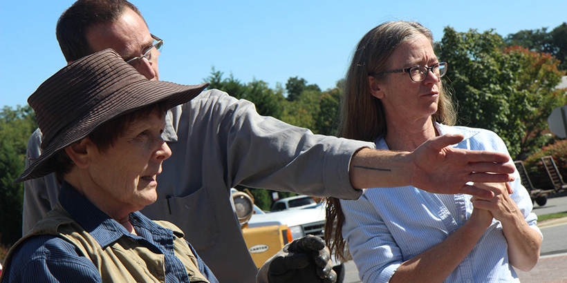Betty and Polly Branch assist with the installation.