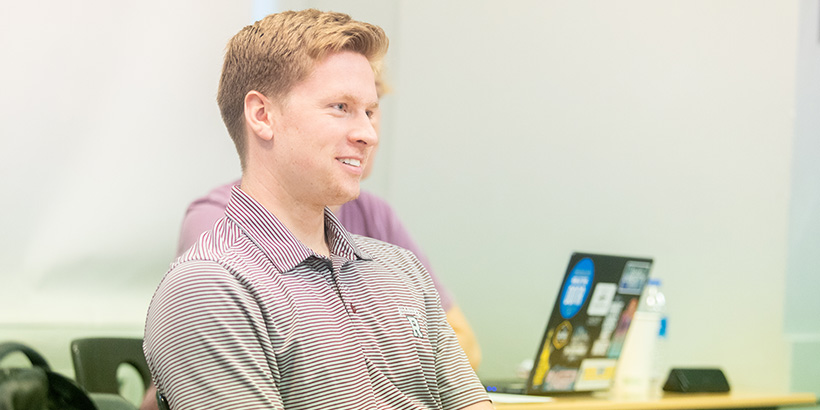 Colin Burns ’23 cited the competitive edge of an advanced degree as one of the factors in his decision to pursue an MBA.