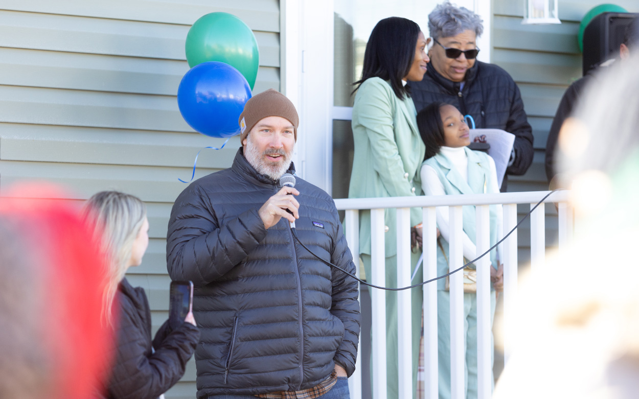 Jesse Griffin, director of the Center for Civic Engagement, explained R House's 19-year legacy of service and community during this month's dedication ceremony.