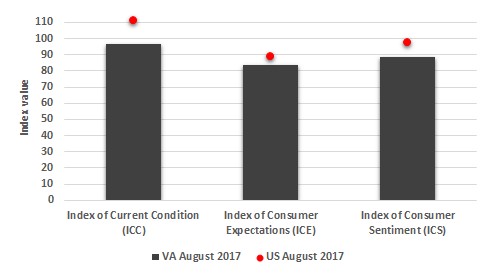Figure 2. Current Virginia and US Consumer Sentiment measures