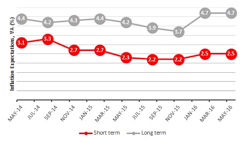 U.S. data from the University of Michigan's Survey of Consumers, May 13, 2016.