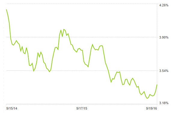 Figure 3. 30-year mortgage rates September 2014-September 2016, Virginia (downloaded from zillow.com 9/18/2016)