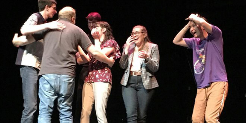 The Theatre Roanoke College cast of the spring musical, [title of show], was surprised by a special guest on their closing night, Saturday, April 13. Hunter Bell, who wrote and developed the show, was in the audience.
